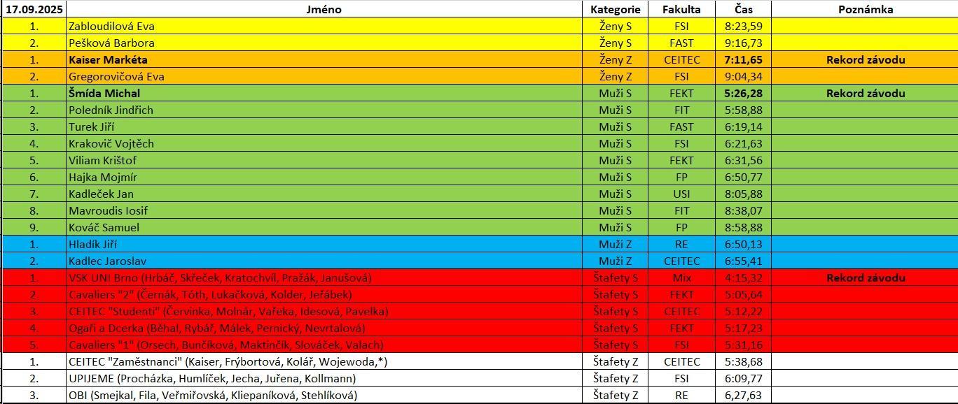 Celkově se závodu zúčastnilo 55 závodníku z řad studentů i zaměstnanců. Příjemné počasí pomohlo k několika rekordům závodu.